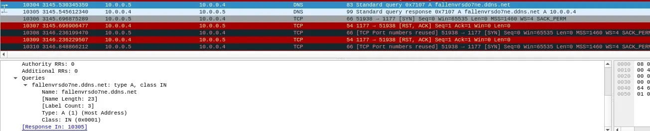 Its Sending a Query to fallenvrsdot7ne.ddns.net adding that to my hosts file add it to localhost(127.0.0.1) so it thinks its connecting with that dns