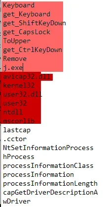 2]Checking Out The Second Screenshot In The Center We See KeyBoard,get_keyboard,get_ShiftKeyDown,everything highlighted with light red color indicating that it has keylogging capabilities at the end of the light red highlight we see j.exe we will see a lot more about this executable later on just keep a note of it. Apart From that We Can Also See Its using a lot of dlls. Most Likely Its Going to load these dll’s except the mscorelib.